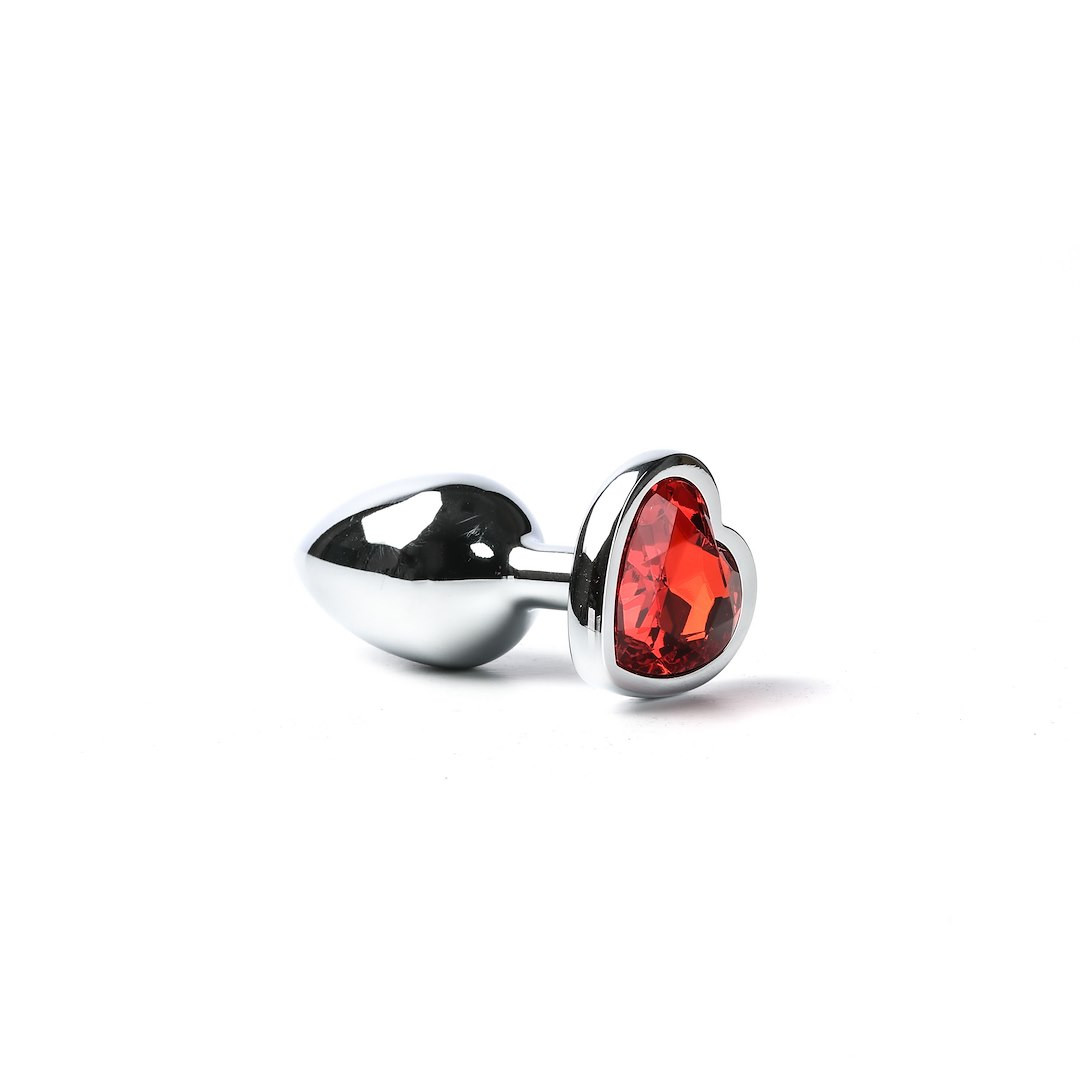 Korek Analny Stalowy Srebrny Rozmiar S Kryształ Czerwone Serce