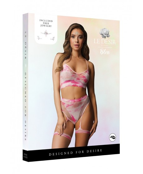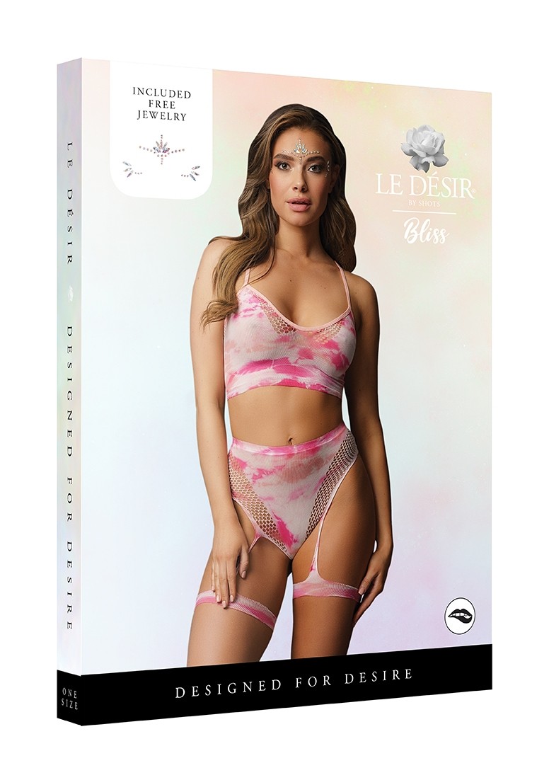2PCBra Set with Garters & Dazzling Sticker - O/S