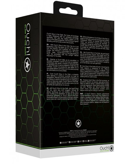 Oto przyszłość bondage: Ouch! Glow in the Dark. Zaprojektowane zgodnie z oryginalną estetyką bondage, ale z dodatkiem rozkosznego świecenia w ciemności, fluorescencyjne elementy w barwie ciemnej zieleni zmienią każdą sesję w imprezę.