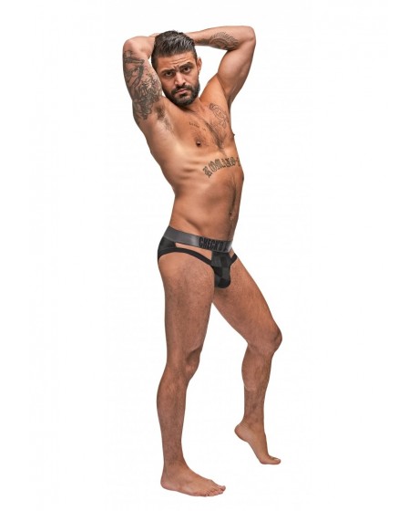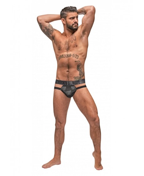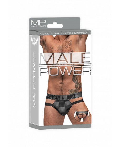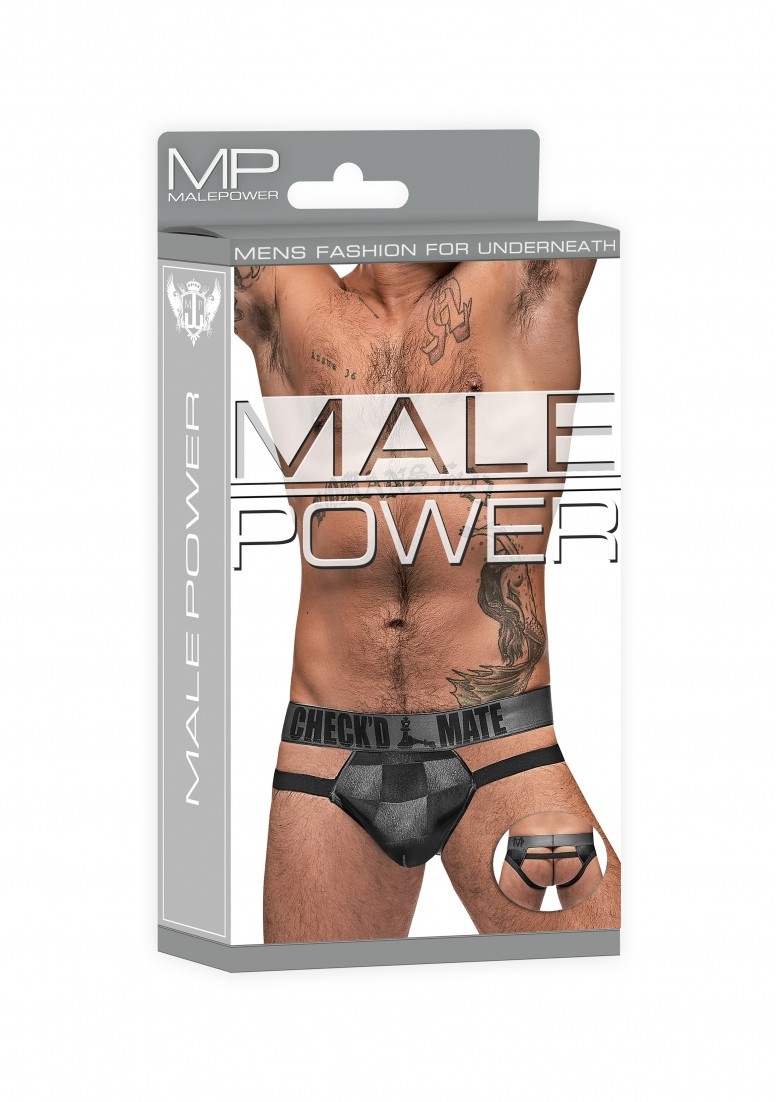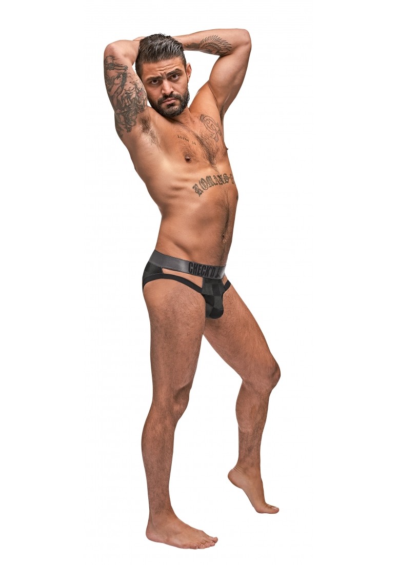 Z kolekcji Checked Mate według męskiej mocy, ten styl zawiera: dżok z czystym tonem na wzorze płyty szachownictwa z przyciągającymi uwagą wycięte okna na biodrach, elastyczny pasek z tyłu, ton tonowania dekoracyjnego z pluszowym elastycznym elastycznym Przytnij i zabawne postacie, które zdobią pluszowy elastyczny pas. Dekoracyjnie zszyty poliestr i spandex mieszany materiał z pluszowym elastycznym wykończeniem i paskiem.