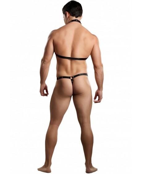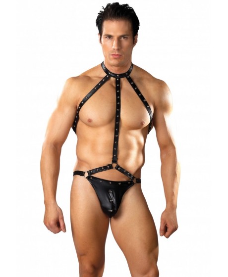 Gladiator ma jednoczęściowe stringi z konturową torebką, paliwo podwójne z podwójnymi pierścieniami przymocowanymi do pasków w stylu piramidowym łączącym się z kołnierzem wiązki trzech pasków z zamykaniem rzepu, micro -tongu z detalami pierścienia i dekoracyjnymi. Studs