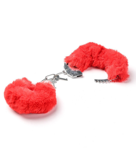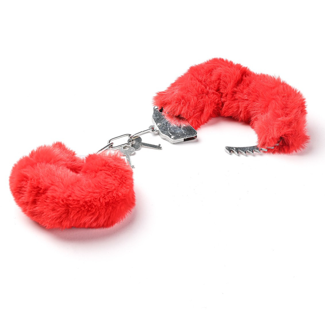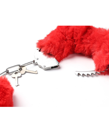 Kajdanki Erotyczne Metalowe Z Futerkiem Czerwone