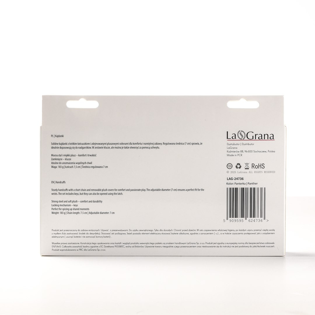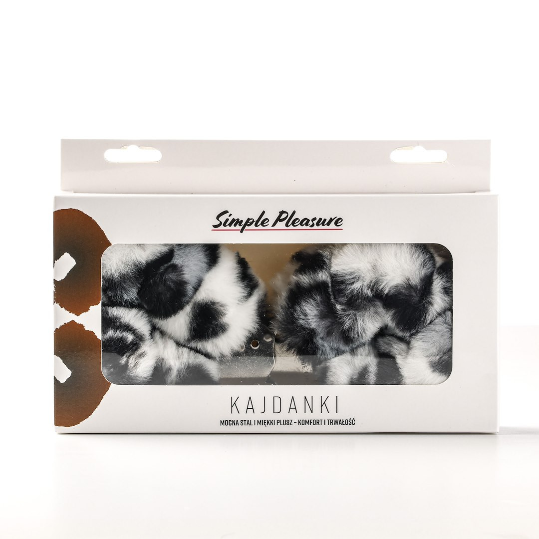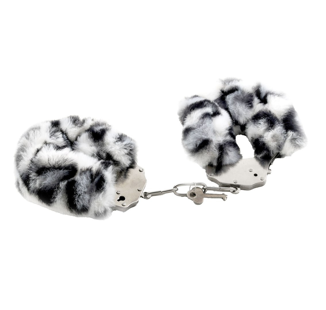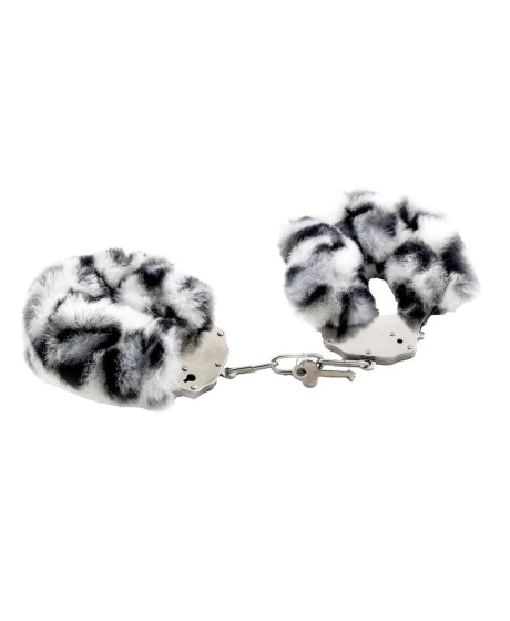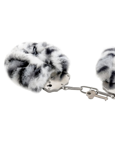 Kajdanki Erotyczne Metalowe z Futerkiem Panterka Biało Czarne