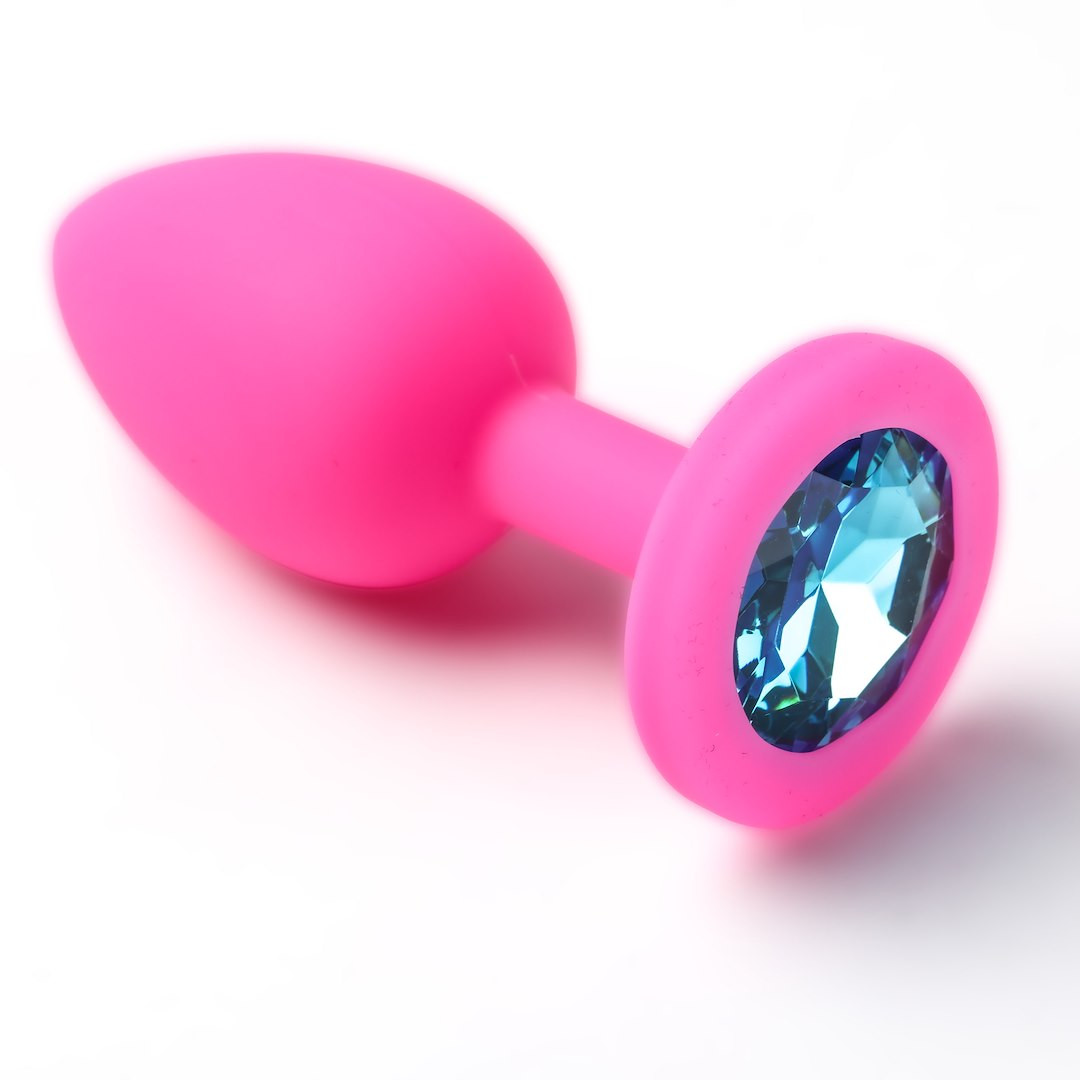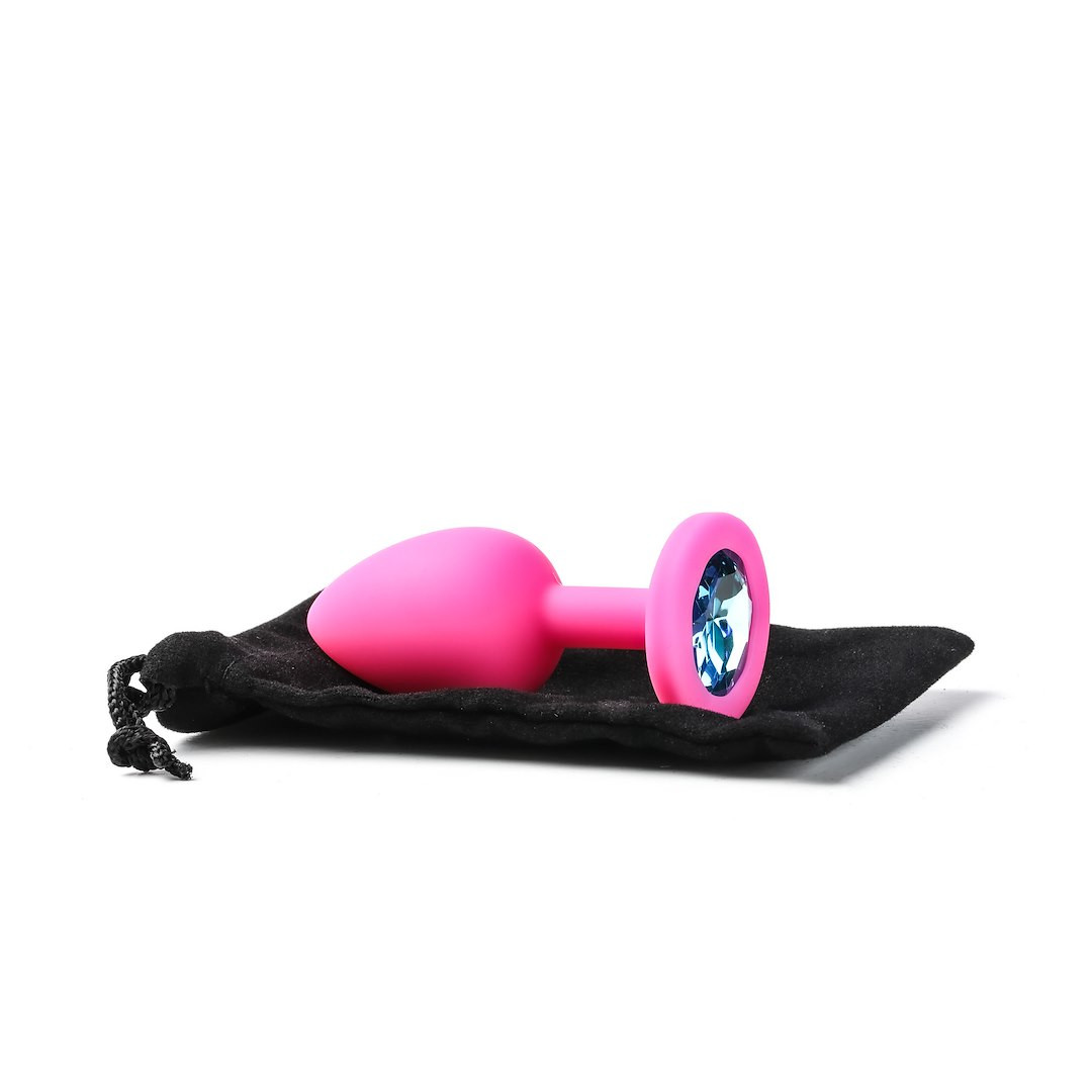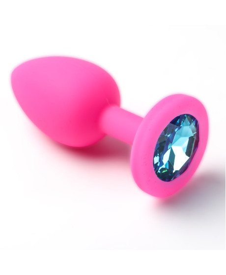 Korek Analny Silikonowy Różowy Rozmiar S Kryształ Jasno Niebieski
