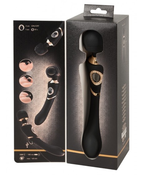 Różdżka masażu dla bardzo eleganckiego relaksu! Cudownie zakrzywiona różdżka masażu z ruchomą głową w kształcie kulki i elastyczną szyją. 10 trybów wibracji. Dla luksusowego masażu z dekoracyjnym klejnotem i guzikiem w eleganckim odbicie. Wodoodporny. Zawiera kabel USB. Kompletna długość 24,2 cm, o maks. 4,3 cm, 214 g. Silikon, pu, abs.