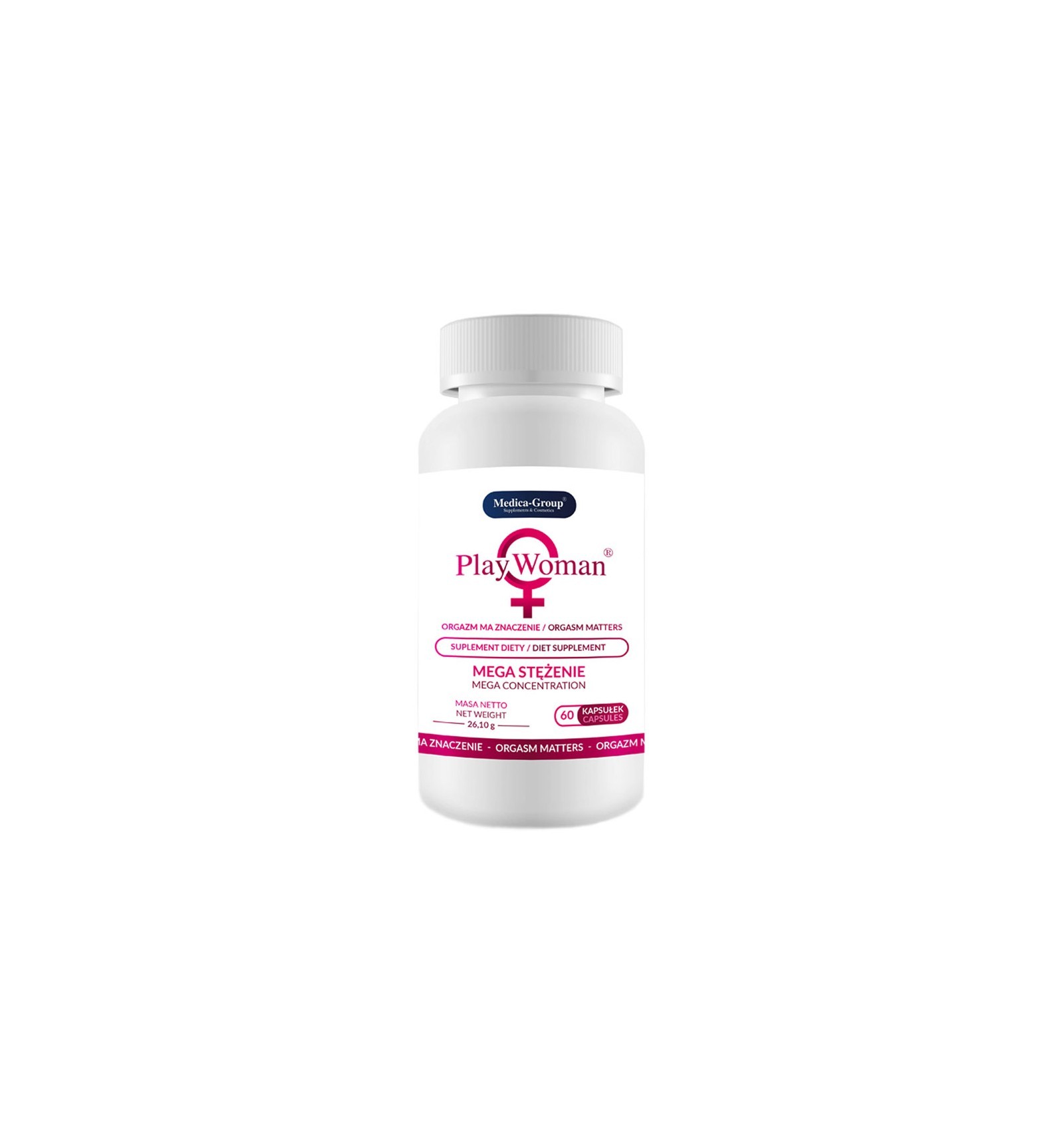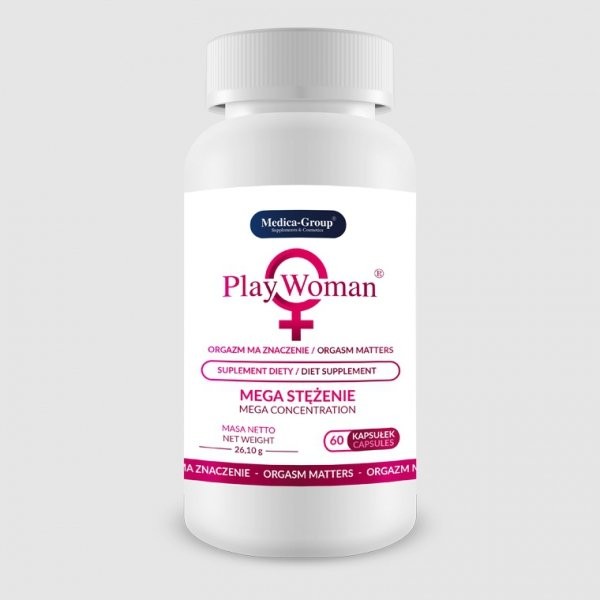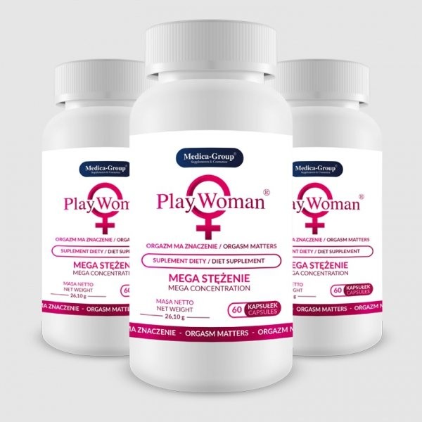 PlayWoman - na pobudzenie orgazmu - POTWIERDZONA SKUTECZNOŚĆ !!!Kapsułki PlayWoman zostały stworzone w celu:• uzyskanie stanu silnego podniecenia• uzyskanie stanu nawilżenia pochwy, dzięki czemu stosunek możebyć bardziej delikatny, a doznania intensywniejsze• uwrażliwienie łechtaczki co może pomóc w osiągnięciu orgazmu łechtaczkowego• zwiększenie Twojej kontroli nad pobudzeniem oraz osiąganym orgazmem• pobudzenie piersi, a w szczególności nadwrażliwość sutek abykażdy dotyk potęgował Twoje doznania• pobudzenia celem uzyskania szybkiego i intensywnego orgazmu• odkrycia nieograniczonej przestrzeni kobiecych przyjemności• silniejszych, dłuższych, mocniejszych orgazmów• lepszego ukrwienia Twojej pochwy i łechtaczki• osiągnięcia upragnionego, orgazmu pochwowego• wzmocnienia, rozpalenia Twojego libido• uczynienia z Ciebie namiętnej i gorącej Kochanki• zwiększenia wrażliwości na dotyk Twojego ukochanego mężczyzny• pobudzenia Twojego organizmu od wewnątrzSPOSÓB UŻYCIA• 1 kapsułkę 2 razy dziennie popić niewielką ilością płynu.UWAGA - Nie należy przekraczać 2 kapsułek na dobę.• Stosując jednocześnie 2 metody: kapsułki, których naturalny skład wpływa na uwrażliwienie, lepsze ukrwienie Twojej pochwy od wewnątrz i żelu używanego bezpośrednio łechtaczkę, możesz uzyskać najlepsze efekty w niespodziewanie szybkim czasie. Spotęguj TEN moment, poznaj nieodkryte, intensywniejsze orgazmy. Pozwól aby Twoje ciało dostało to czego pragniesz.Skład kapsułek PlayWomanL-arginina 110 mgŻelatynaEkstrakt z korzenia żeń-szenia syberyjskiego 4:1 75 mgEkstrakt z korzenia maca 4:1 65 mgEkstrakt z korzenia sarsaparilla 4:1 65 mgEkstrakt z nasion buzdyganka naziemnego 20:1 55 mgEkstrakt z ziela czarnego owsa 10:1 55 mgSubstancja wypełniająca: celuloza mikrokrystaliczna.Barwnik: dwutlenek tytanu*Stosowanie suplementu diety PlayWoman przez osoby przyjmujące leki przeciwcukrzycowe wymaga konsultacji z lekarzem.