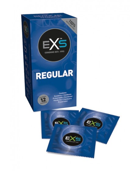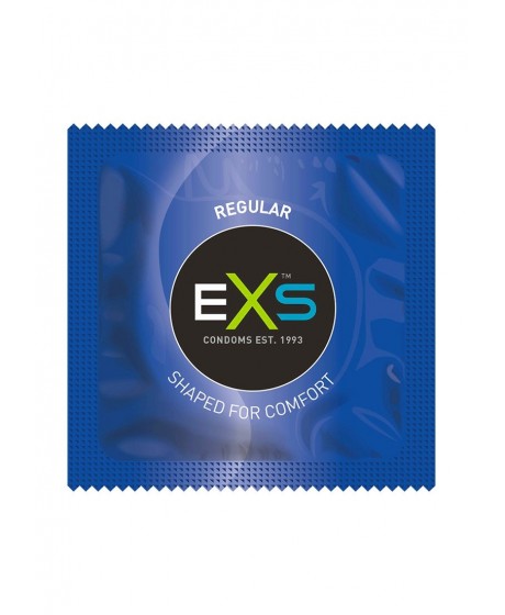 Exs Regular to oryginalna i największa sprzedaż wszystkich prezerwatyw EXS. Zwykłe prezerwatywy są prezerwatywy o szerokości 54 mm z rozkloszowanym stemkiem i są odpowiednie dla większości mężczyzn z pewnością. Zwykłe prezerwatywy nie mają zapachu lateksowego i są wykonane z cienkiego, ale silnego jedwabistego lateksu. Warto przetestowane na temat standardów europejskich i British Standards Institute (BSI) Produkt ten jest wyjątkowo cienki, ale ma wytrzymałość grubszych regularnych prezerwatyw.