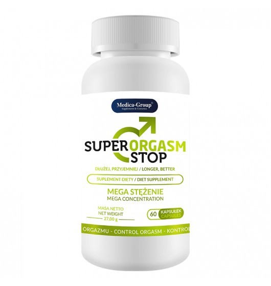 Kapsułki na opóźnienie przedwczesnego wytryskuSuper Orgasm Stop ma na celu:• Pomóc w wydłużeniu trwania stosunku• Zwiększyć kontrolę nad przedwczesnym wytryskiem• Pomóc w pełnej kontroli nad orgazmem• Utrzymać poziom pobudzenia poniżej progu dla przedwczesnego wytrysku przy równoczesnym utrzymaniu erekcji• Wywierać uspokajający wpływ na ejakulację• Nauczenia się modulować i redukować poziom pobudzenia i podnieceniaSuper Orgasm Stop jest preparatem wpływającym na kontrolę nad wytryskiem, a tym samym wydłużeniem czasu trwania stosunku.Aż 83% respondentów poleciłoby suplement diety Super Orgasm Stop innemu mężczyźnie.Rezultaty odczuwalne już nawet po 5-7 dniach stosowania.Panowie potwierdzają, że ich erekcja trwa dłużej nawet o więcej niż 15 minut.Pełny skład kapsułek Super Orgasm StopOptymalne połączenie składników aktywnych Super Orgasm StopNa problem z przedwczesną ejakulacją duży wpływ ma system nerwowy dlatego też należy podkreślić kojące działanie owsa i bogactwo zawartych w nim składników mineralnych, które wzmacniają organizm od wewnątrz.Świat roślin nigdy nie przestaje zaskakiwać zielarzy i botaników. Okazuje się, że wegetujące istoty są w stanie wytworzyć związki odpowiadające substancjom syntetyzowanym przez ludzki organizm. Ziołolecznictwo cieszy się dużym zainteresowaniem i słusznie. Znacznie rozsądniej skorzystać z darów natury zamkniętych w kapsułkach Super Orgasm Stop. Owies zwyczajny - łagodzi stres i napięcie nerwowe.Owies zwyczajny jest cudownym środkiem odżywczym, bogatym w białko,wapń, magnez, krzem, potas, żelazo oraz witaminy (przede wszystkim z grupy B). Jego składniki odżywcze pomagają w utrzymaniu zdrowego układu nerwowego. Owies tradycyjnie jest stosowany w leczeniu depresji, ogólnego osłabienia oraz wyczerpania psychicznego. Ma właściwości relaksujące i uspokajające. Bardzo pomocny dla osób, które chcą zrezygnować z brania antydepresantów. Okazał się skuteczny w walce z długotrwałym stresem ponieważ działa wzmacniająco i tonująco regulując nadmierną wrażliwość i nadpobudliwość. Właściwości uspokajające owsa są również pomocne w osłabianiu napięć i stresów, związanych z obawami i niepewnością w odniesieniu do partnera. Przetwory z owsa pozytywnie wpływają też na funkcje seksualne, stymulując uwalnianie testosteronu, który pobudza centra erotyczne zlokalizowane w mózgu. Kolocorośl lekarski i jego wyjątkowe właściwościTo prawdziwy „samiec” w świecie flory. Zawiera zaskakująco dużą ilość hormonów męskich - androgenów pod postacią roślinnego odpowiednika, tj. sarsapogenin. Związki te doskonale imitują działanie testosteronu i wzmagają syntezę dihydroergotestosteronu. Jest to doskonała wiadomość dla panów, którzy stracili radość z pożycia seksualnego. Kolocorośl lekarski jest silnym afrodyzjakiem. Skutecznie wzmaga apetyt na miłość. Kolocorośl lekarski to między innymi bogactwo witamin (C, B, D oraz A) polisacharydy, aminokwasy i szereg różnorodnych substancji odżywczych pochodzenia roślinnego,w tym: jod, cynk, miedź, żelazo, mangan, siarkę, krzem i sód. Ekstrakt z korzenia maca 4:1 100 mg L-arginina 100 mg Żelatyna Ekstrakt z korzenia sarsaparilla 4:1 70 mg Ekstrakt z nasion buzdyganka naziemnego 20:1 60 mg Ekstrakt z korzenia żeń-szenia amerykańskiego 4:1 60 mg Ekstrakt z ziela owsa zwyczajnego 10:1 60 mgSubstancja wypełniająca: celuloza mikrokrystalicznaBarwnik: dwutlenek tytanu*Stosowanie suplementu diety Super Orgasm Stop przez osoby przyjmujące leki przeciwcukrzycowe wymaga konsultacji z lekarzem.Sposób użycia kapsułekSuper Orgasm Stop - Kapsułki - 60 szt.1 kapsułkę 2 razy dziennie popić niewielką ilością płynu.UWAGA - Nie należy przekraczać 2 kapsułek na dobę.