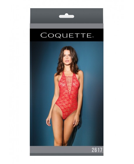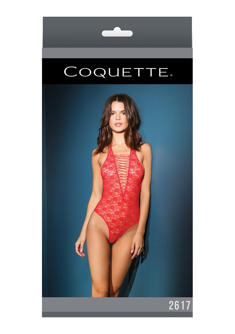 Teddy Hanter z koronkowymi przednimi dekoltem w szpic i wysokiej nogi. Wykonane z elastycznej koronki.