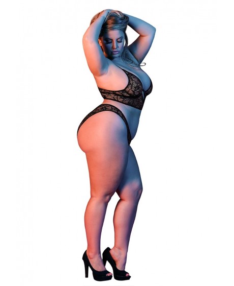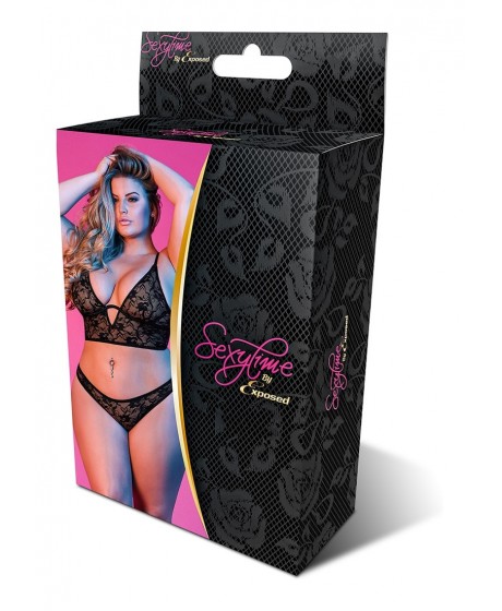 Z kolekcji Exposed by Magic Silk ten styl obejmuje: bralette z regulowanymi paskami ramion, akcentami wycięcia dziurki od klucza i wzmacniaczem; Zamknięcie oczu z tyłu i pasujące klasyczne koronkowe majtki.