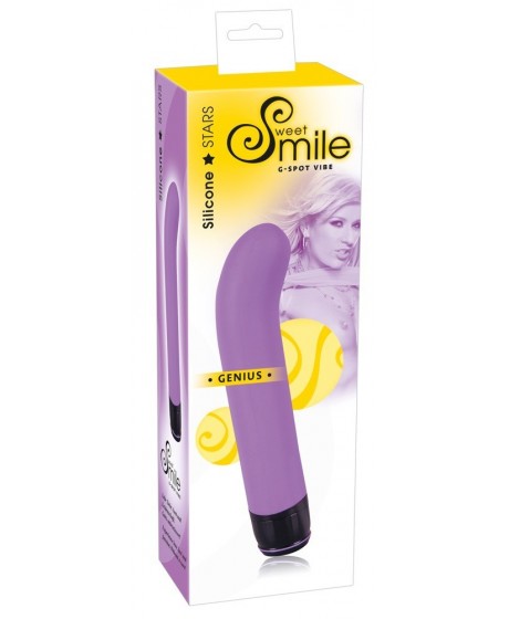 Stymuluj tajne miejsce przyjemności! Ten wibrator ze słodkiego uśmiechu stymuluje punkt G ze względu na jego zakrzywiony kształt i wyróżnia się ze względu na jego elastyczność! Jego 7 trybów wibracji można regulować za naciśnięciem przycisku i zapewnić różnorodną przyjemność. (Prosimy o osobno akumulatory: 2 x AA). Długość kompleksowa 20 cm, długość wstawienia 17,5 cm, o 3,7 cm. Silikon, abs.