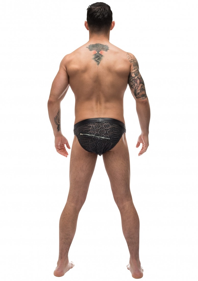 Zip Bikini ma przekątne zamki na woreczkach i z tyłu z klapami ochronnymi, wyprofilowaną torebką, odchudzającym mokrym wyglądem. Półprzezroczysty materiał wypalenia z tonem na abstrakcyjnym wzorze. Lekki i oddychający z całą drogą rozciągającą się.