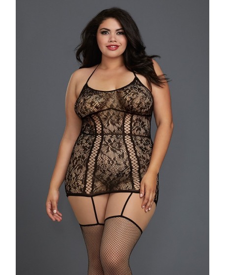 Queen Size Fishnet Garter Dress - Black