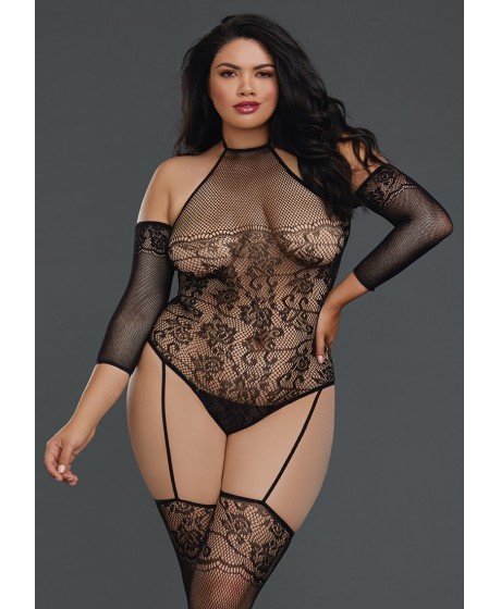 Fishnet & Lace Teddy Bodystocking - Black