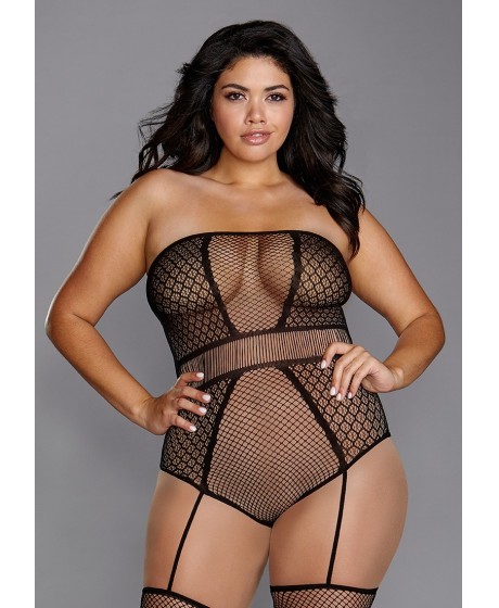 Queen Size Fishnet Teddy Bodystocking - Black