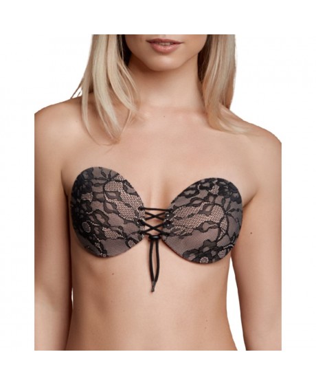 Stanik samonośny - Bye Bra Lace-It Bra Miseczka B Czarny